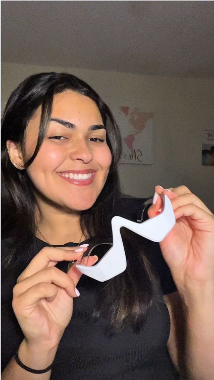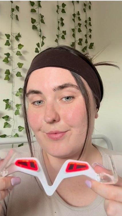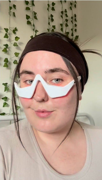 Lastly, the design of our product ensures the light works on the under-eye area and does not directly target the eyes when worn correctly. You can also close your eyes while positioning the device for added peace of mind, and once in place, feel free to open them again. After all, the device is designed to target the skin in close proximity so the microcurrent can work its magic—our 2-in-1 feature that sets us apart from other brands!